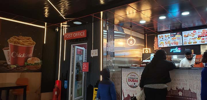 Unexpected pairings. A post office inside a fried chicken shop. And somehow it works.